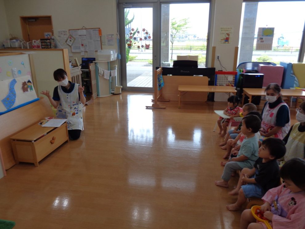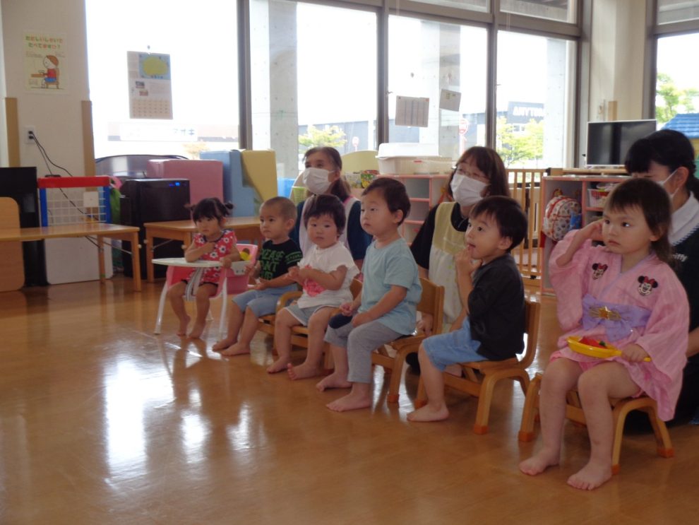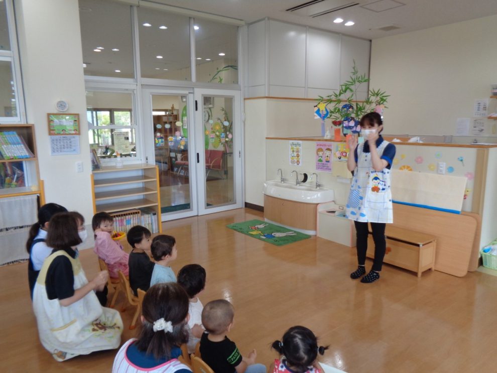 たいわっこ保育園では7/5、七夕会がありました。パネルシアターでは、「たなばたさま」のお話を真剣な表情で見ていました。七夕の作品紹介や、「たなばたさま」の歌を歌って楽しみました。連日の暑さにも負けず、みんな元気に遊んでいます!