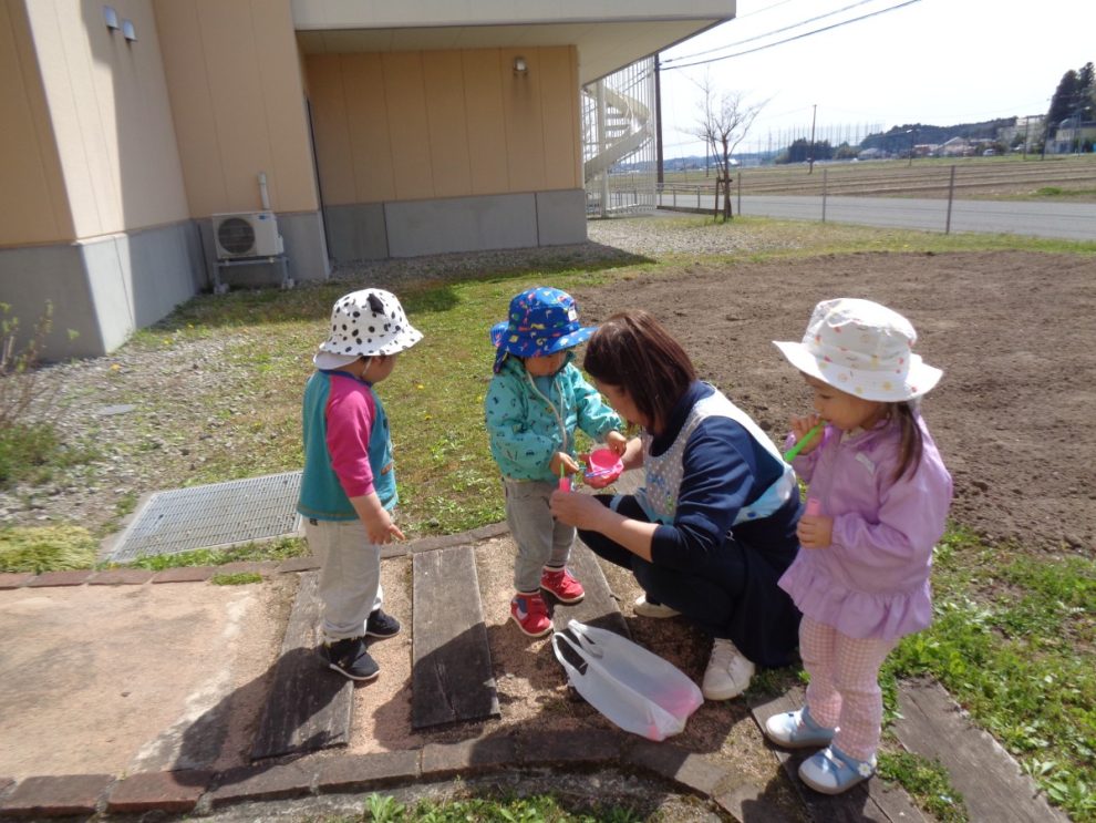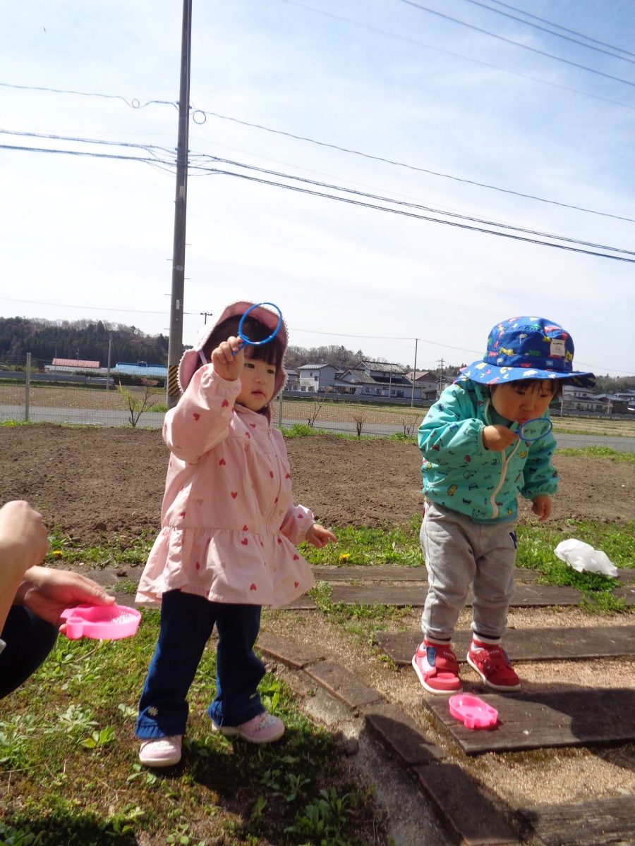 子どもたちは、新しい環境にも少しずつ慣れ、お部屋の中を散策したり、お外遊びを楽しんだりしています。様々な経験を通して大きく成長できるよう、職員一同見守っていきたいと思います。一年間どうぞよろしくお願いいたします。